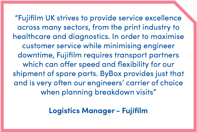 We helped Fujifilm boost engineer productivity to allow them more time to focus on customer satisfaction. By introducing our pre-8am delivery service with end-to-end visibility and tracking of parts in the field, Fujifilm were able to increase the time engineers could spend helping customers to hit SLAs.